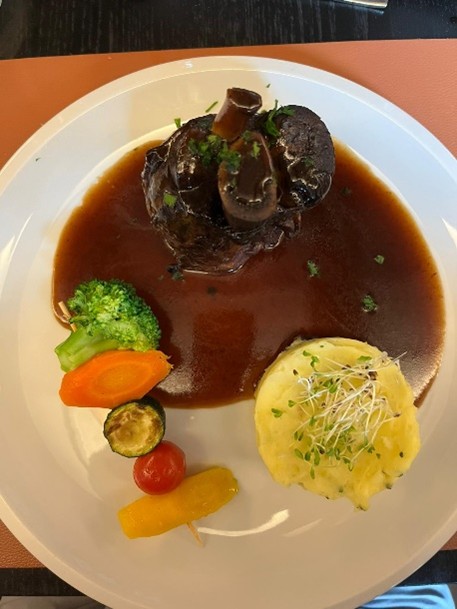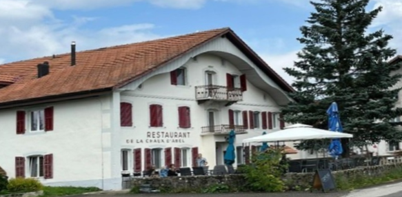 Ensuite, le car nous amène à la Chaux-d’Abel, au cœur des Franches-Montagnes pour le repas de midi. Un personnel attentif et sympathique nous sert un pâté maison suivi d’un jarret de porc délicieusement confis et pour terminer une meringue accompagnée, devinez avec quoi, une crème double de la Gruyère.