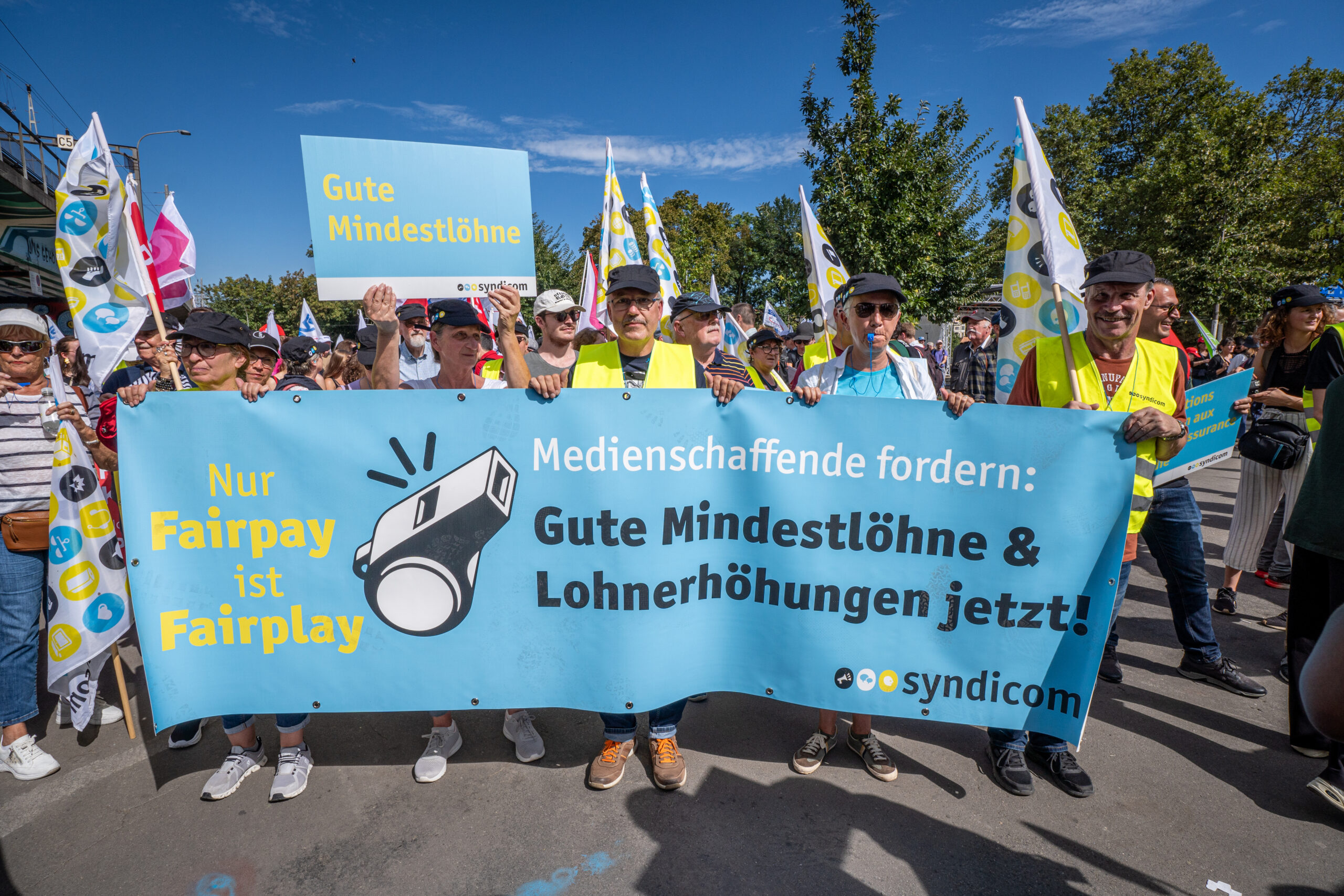«Ci battiamo per i salari reali, ma anche per i salari minimi, che colpiscono le persone più precarie, spesso i giovani, gli immigrati, le persone meno qualificate e il personale temporaneo. syndicom si batte anche contro la sottoquotazione dei compensi subita dai liberi professionisti.