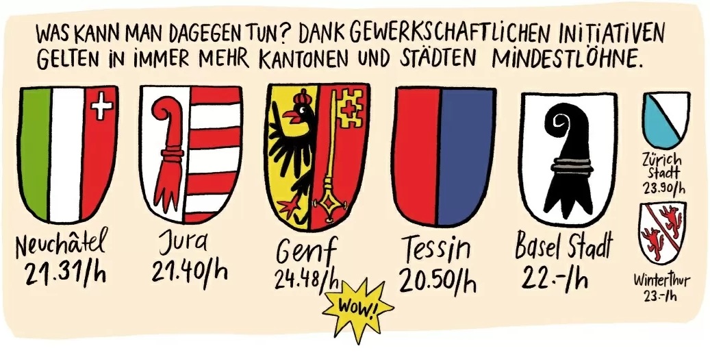 Die Debatte wird oft auf wirtschaftlicher Ebene geführt, obwohl Mindestlöhne vor allem ein sozialpolitisches Instrument sind. In einigen Kantonen garantieren sie ein Existenzminimum, insbesondere in Branchen wie dem Gesundheitswesen, dem Gastgewerbe, dem Einzelhandel, dem Friseurhandwerk und der Reinigung. In denjenigen Kantonen, in denen ein Mindestlohn gilt, ist dieser so berechnet, dass ein Vollzeitbeschäftigter nicht weniger verdient als jemand, der Sozialhilfe bezieht.