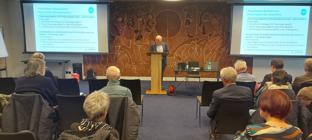 Bei der Tagung wurden zwei wichtige Resolutionen einstimmig verabschiedet. Die erste fordert konkretes Handeln beim Teuerungsausgleich auf Pensionskassenrenten. Sie verlangt, dass gesetzliche Grundlagen geschaffen werden, damit Stiftungsräte einen Teuerungsausgleich nur gut begründet verweigern können. Arbeitnehmervertretungen in Stiftungsräten müssen das Thema auf die Traktanden setzen und nachhaltige Modelle entwickeln. Darüber hinaus sollen Gewerkschaften das Recht erhalten, sich in Pensionskassen-Stiftungsräte wählen zu lassen – auch bei Sammelstiftungen.